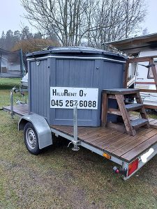 Meillä on kaksi eri koko vaihtoehtoa vuokrattavana. Isompi palju on 6-8 henkilölle ja pienempi palju on sopiva 4-5 hengelle.